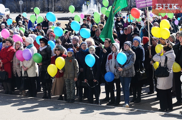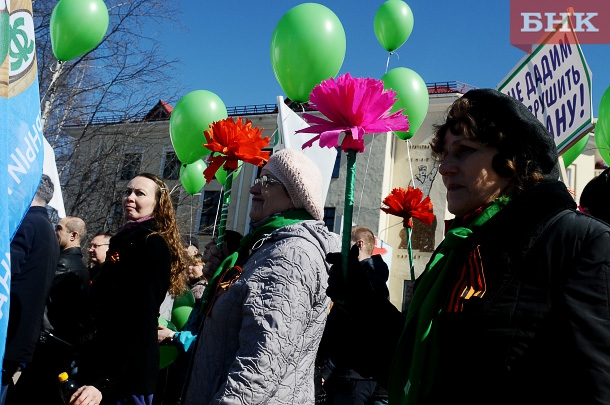 В 10 утра колонна начала свой путь от администрации Сыктывкара. На демонстрацию вышли представители 18 профсоюзных организаций республики, акция собрала, по разным оценкам, от 500 до 700 человек. Возглавили шествие профсоюзные лидеры, следом двигались представители Общероссийского народного фронта, работники авиации, лесной отрасли, «Почты России», «Ростелекома». Самую многочисленную делегацию, порядка 100 человек, составили «лесники», сотрудники Сыктывкарского фанерного завода, Княжпогостского ДВП, Жешартского фанерного комбината.