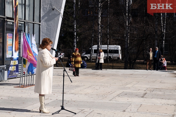 Председатель Федерации профсоюзов Коми Людмила Ляшенкова поздравила трудящихся с Первомаем, отметив, что для них этот день не лирический праздник Весны и Труда, а День международной солидарности трудящихся. Главным девизом ее выступления стали слова: «Росту цен - удвоение зарплаты!»