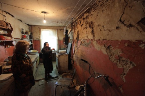 - В соседнем доме №15 точно такая же история была, как у нас. Ночью дом затрещал, и полы первого этажа начали проваливаться. Тогда всех жильцов этого дома переселили в маневренное жилье в местечке Човъю, – рассказала Галина Кислякова. – Нам всем тоже предлагали туда переехать. Съездила я туда, посмотрела, пообщалась со знакомыми, которые там живут уже восемь лет и отчаялись переехать в новую квартиру. И зачем мы туда поедем? Чтобы остаться там навсегда? А там ничуть не лучше, чем здесь. Разве что крыша и полы не проваливаются. А так – антисанитария полнейшая.