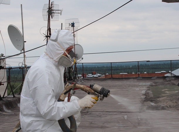 Как сообщила пресс-служба администрации Усинска, капитальный ремонт кровли идет полным ходом, позавчера рабочие приступили к нанесению первого слоя покрытия. Применяется жесткий пенополиуретан, который после распыления затвердевает в течение нескольких секунд. За первый день подрядчики покрыли пенополиуретаном чуть меньше половины площади кровли. Вторым слоем будет укладываться уже сверхпрочный современный синтетический материал эластомер. Специалисты отмечают не только прочность, но и эластичность такого двуслойного покрытия, которое не меняет своих характеристик даже в сильные морозы.