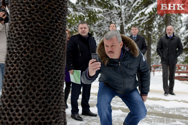 Руководитель администрации Сосногорского района Дмитрий Кирьяков провел Сергея Гапликова вдоль скованных льдом ручьев и водоемов, рассказав, какими прекрасными они бывают в теплое время года с яркой подсветкой, музыкой и каскадным водопадом. Он отметил, что глубина всех водоемов не превышает 60 сантиметров во избежание несчастных случаев. Помимо этого в парке хватило места и героям коми сказок в виде фигур, вырезанных из дерева кировскими умельцами, а также детской площадке, возведенной в рамках реализации малых проектов.