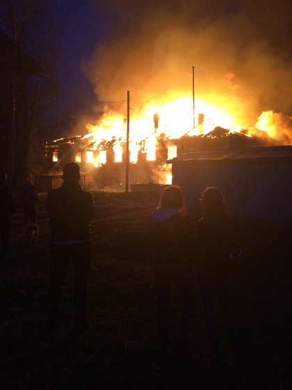 В сыктывкарском местечке Лесозаводе горит двухэтажный деревянный дом. По предварительным данным, его жители уже расселены. Однако есть сведения, что две семьи продолжали жить в здании и судились по поводу предоставленной жилплощади.