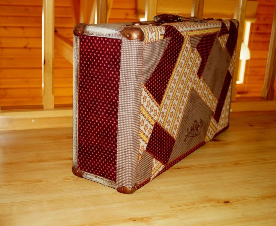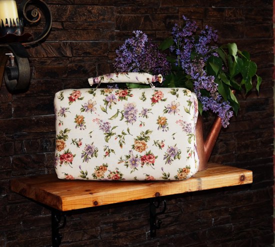 Во внешней отделке тоже не все просто. Казалось бы, взял отрез ткани, приклеил или натянул, закрепил, чемодан готов. Я с этого начинала. Сегодня без улыбки не могу вспоминать о своих первых опытах, которые привели к не менее смешным последствиям: ткань отвалилась, краска изменила цвет, декоративные гвоздики вывалились…Мой первый чемодан очень быстро вернулся к первозданному виду. И здесь нужно помнить, что простой дороги не бывает ни в одном виде творчества. Освоение любой техники требует времени, потому что только со временем ты начинаешь чувствовать материал, точно знать, как он себя поведет при той или иной обработке. Главное – это желание экспериментировать, что-то додумывать, искать новые подходы, не стоять на месте, получать удовольствие от самого процесса декорирования! Именно поэтому для своих работ я стала осваивать технику пэчворка (лоскутного шитья), объемной аппликации и даже вышивку гладью.