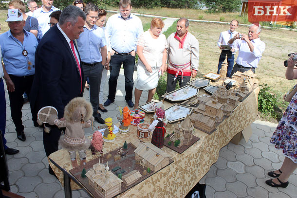 На турбазе Новикова свои работы представили сразу несколько мастеров. Сельчане изготавливают традиционные сувениры из дерева и современные магниты, обрамляют иконы, шьют кукол. Мастер Владимир Поповец делает точные копии усть-вымских и российских деревянных храмов. В его коллекции есть копии церквей из всемирно известного архитектурного ансамбля на острове Кижи в Карелии. По словам мастера, свои шедевры он делает по фотографиям и старинным рисункам.
