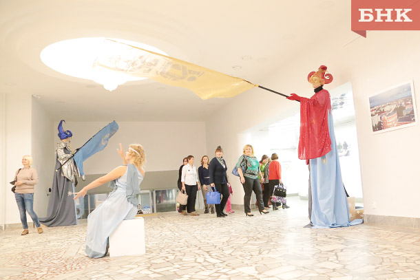 На презентации нового концертного зала «Сыктывкар» праздничная атмосфера чувствовалась уже в фойе, где многочисленных гостей встречали живые арт-объекты - музы искусств в ажурных нарядах, а на стенах открылась небольшая фотовыставка, посвященная городу.
