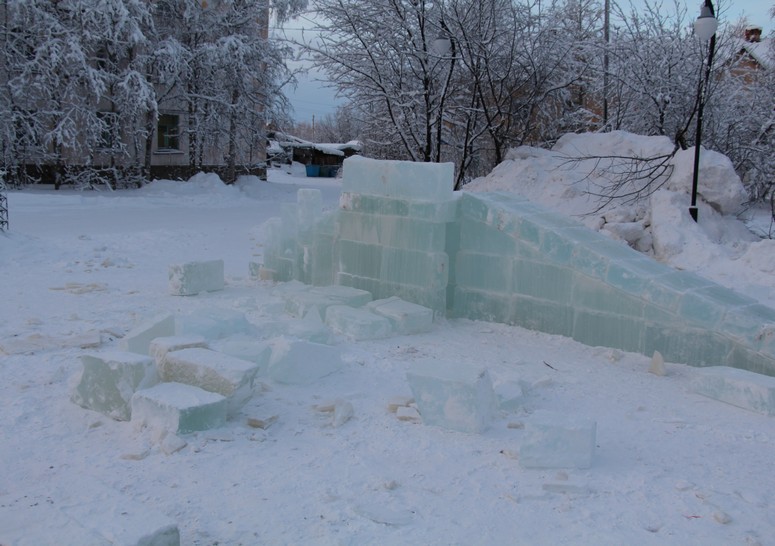 В Печоре вандалы разрушили лед для горки