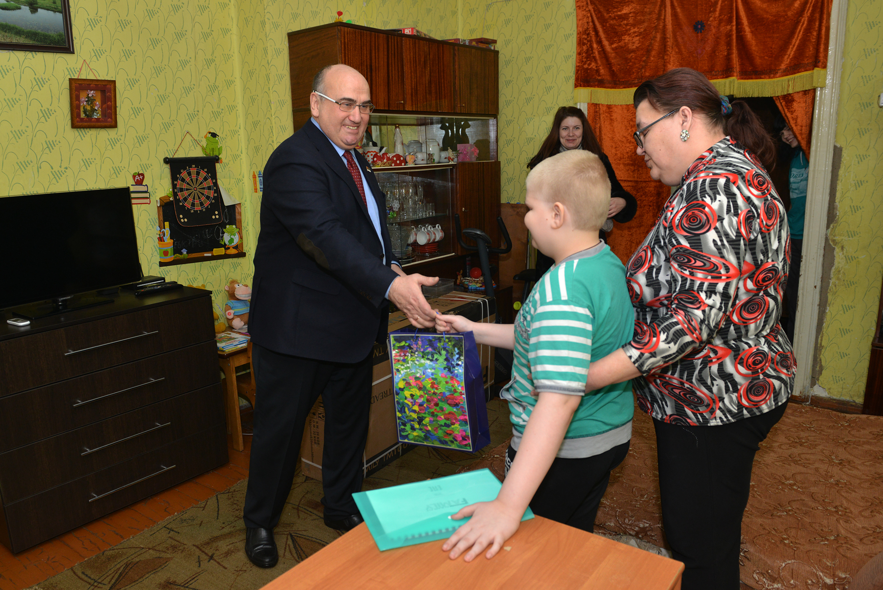 Вручая подарок, Дмитрий Кологривый поздравил семью Кузнецовых с наступающим Новым годом и пожелал домочадцам исполнения всех желаний.