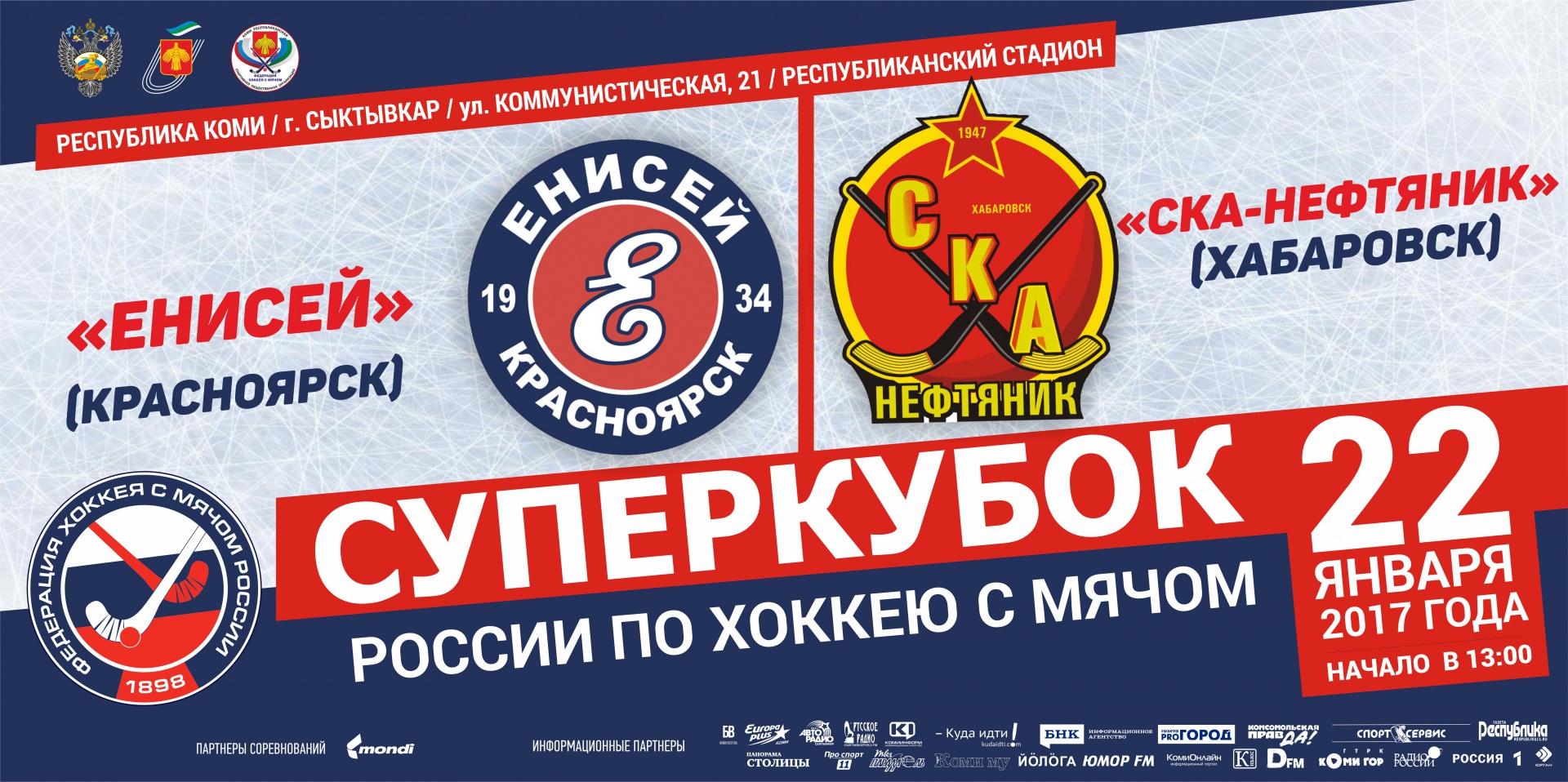 В воскресенье, 22 января, в Сыктывкаре впервые будет разыгран Суперкубок России по хоккею с мячом среди мужских команд. На льду Республиканского стадиона в битве за престижный трофей сойдутся красноярский «Енисей» и хабаровский «СКА-Нефтяник». Церемония открытия начнется в 12.45. Начало матча - в 13.00. Вход свободный.