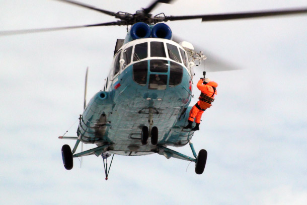 Было проведено десантирование спасателей с вертолета на льдину при помощи лебедки и альпинистского снаряжения. Отработана техника подъема в воздух с поверхности воды пострадавшего, и перенос его в безопасное место. В роли пострадавшего спасатели использовали манекен.