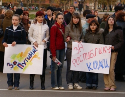 На вопрос, кто является организатором митинга, дама охотно ответила, что к таковым следует отнести «Молодую гвардию», сторонников Путина и «предвыборную бригаду», очевидно подразумевая под «бригадой» пиарщиков из «Корпорации «Я», суетившихся в толпе под руководством Игоря Резникова. Г-н Резников который курировал в Коми мартовские выборы депутатов госсовета и судя по всему курирует декабрьские выборы депутатов госдумы.