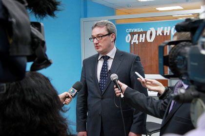 Отвлекшись от разговора с Бобровицкой, Гайзер вдруг остановил направляющуюся к выходу некую женщину, спросив у нее, в первый ли раз она пришла в «службу одного окна».