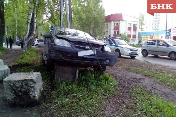 В Сыктывкаре иномарка наскочила на бетонную опору