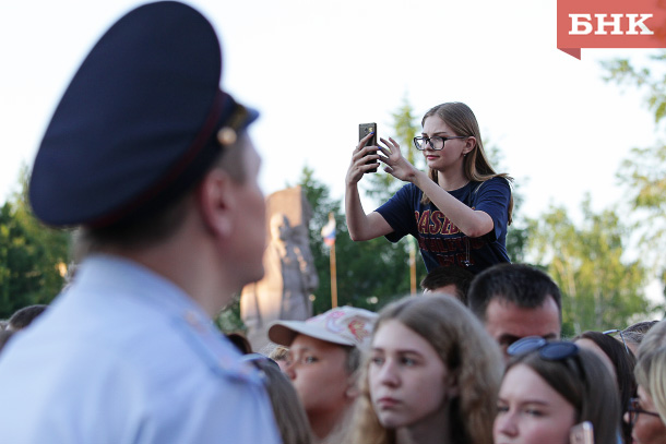Дневная программа собрала в центре Сыктывкара не менее двух тысяч выпускников. К вечеру же на площади было гораздо больше людей – некоторые пробирались ближе к сцене, другие, наоборот, уходили на ступеньки рядом с памятником Ленина. Для безопасности вокруг периметра установили ограждения и КПП с полицейскими, которые проводили досмотр.