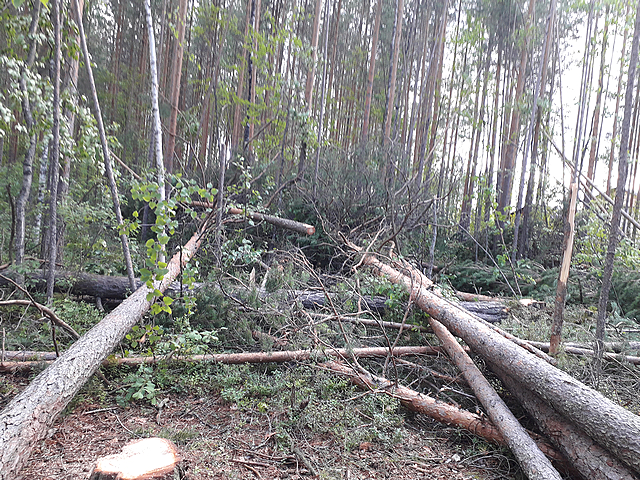 Жители близлежащих домов собирают подписи против дальнейшей незаконной вырубки сосновой рощи.