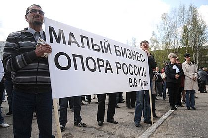 «Малый бизнес — не дойная корова», - гласил один из транспарантов. Другой представлял собой цитату Дмитрия Медведева «Хватит кошмарить бизнес» и приписывал ее почему-то премьеру Владимиру Путину.