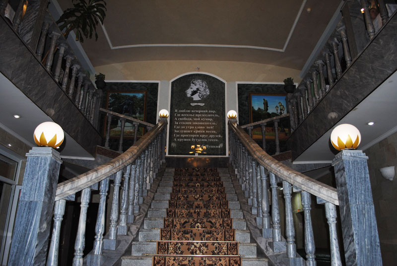 Как я понял позже, профиль Александра Сергеевича и напечатанное на стене стихотворение «Веселый пир» — единственное, что связывает «Пушкинский» с великим поэтом. Несмотря на это, «элитарность» и «изысканность» общепита, который чудным образом дожил до своего 13-летия, активно подчеркиваются в официальной группе «Вконтакте» и на сайте.