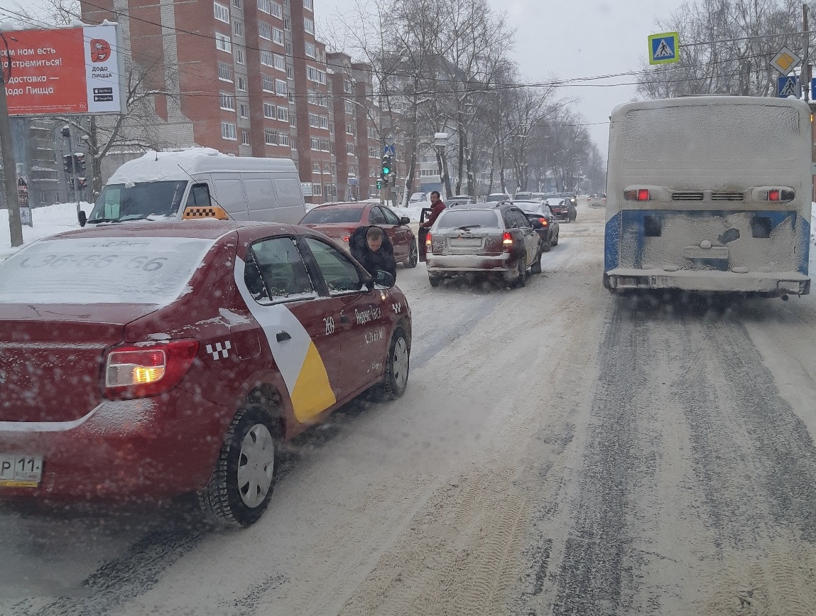 Авария с участием автомобиля службы такси произошла сегодня в столице Коми.