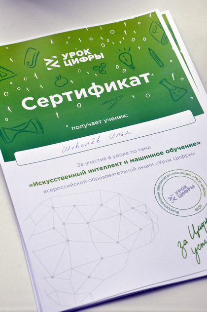 После занятий всем учащимся вручили сертификаты участника Урока цифры».
