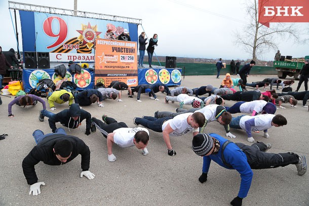 В честь празднования Дня Победы в Сыктывкаре в Кировском парке раскинулось сразу несколько креативных площадок: от арт-проектов до патриотических концертов. Здесь же расположилась спортивная зона торжества, где любой желающий мог поучаствовать в акции «Рекорд Победы-2017».